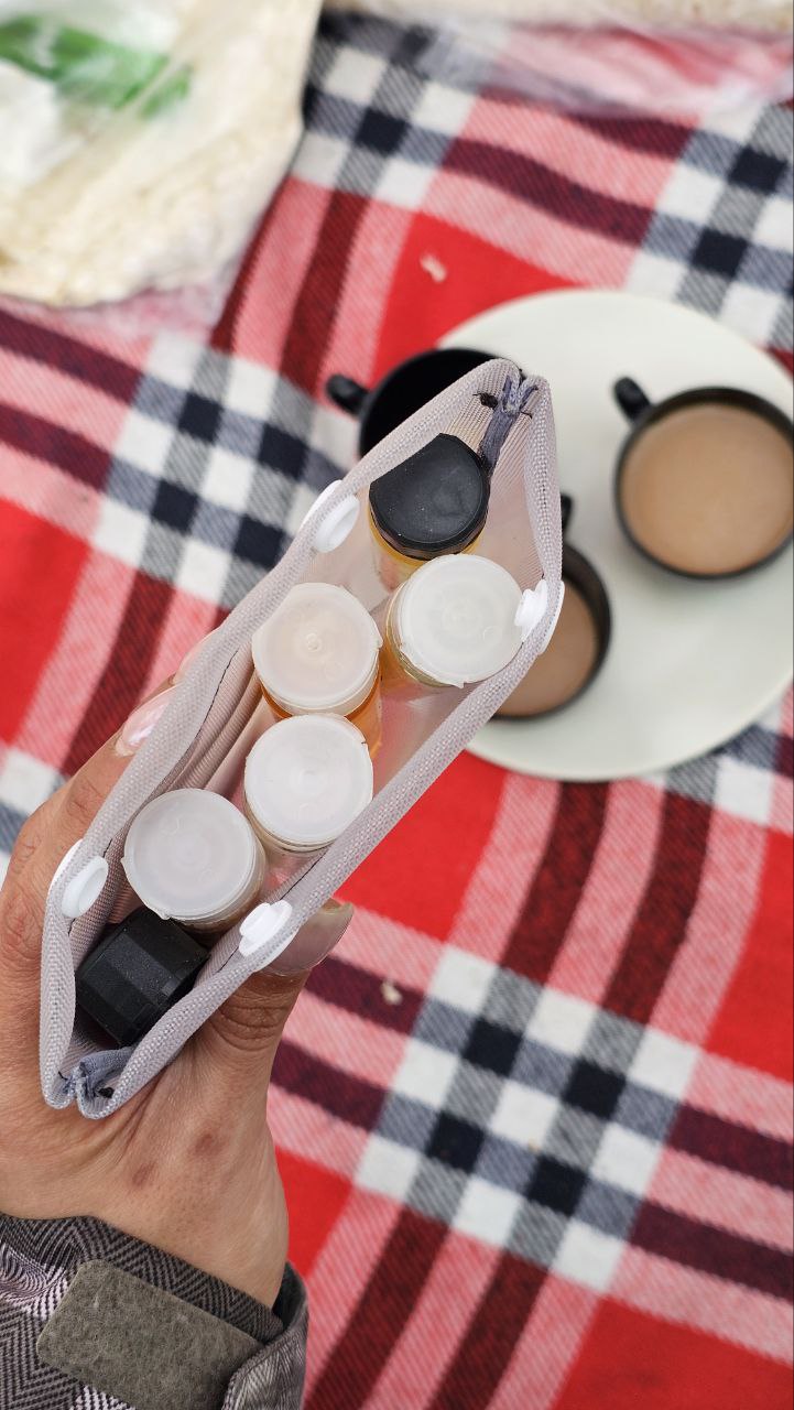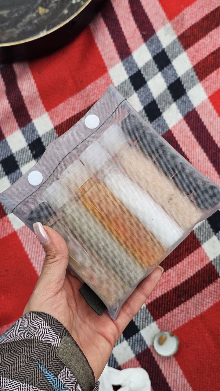 هر محفظه دارای دو درب ساده برای ریختن مایعات و یک درب پاششی برای مصرف آسان ادویهجات است. طراحی کیف توری شفاف و مقاوم این امکان را فراهم میکند که محتویات داخل کیف را بهراحتی مشاهده کرده و آن را با کمترین حجم، در کوله یا ساک سفر جا دهید.